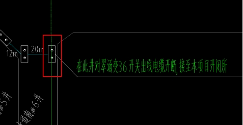 9、如下图,紫云湖TOD年华云湖项目第二路外线在此开断,开断后分为两段,其中一段接入本项目作为第二路电源。开断后另一段图纸未说明如何处理,请问开断后另一段电缆处理是否在本次招标范围内?若在,请问如何处理?