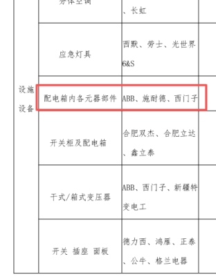 13、配电箱内各元器件采用ABB、西门子、施耐德,请问具体指哪些元器件?
